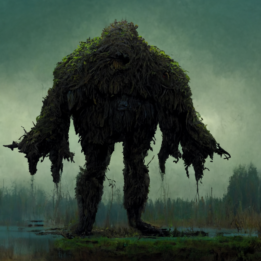 A Bogrot is a giant creature with large toad shaped arms and very deceptive earthen camouflage. With a chest that looks identical to dirt and rubble, and a back that looks like fresh grass covered in twigs. This creature will lay face down in a small river or stream. Lock itself tightly between the two river banks. As it waits patiently for prey to cross.